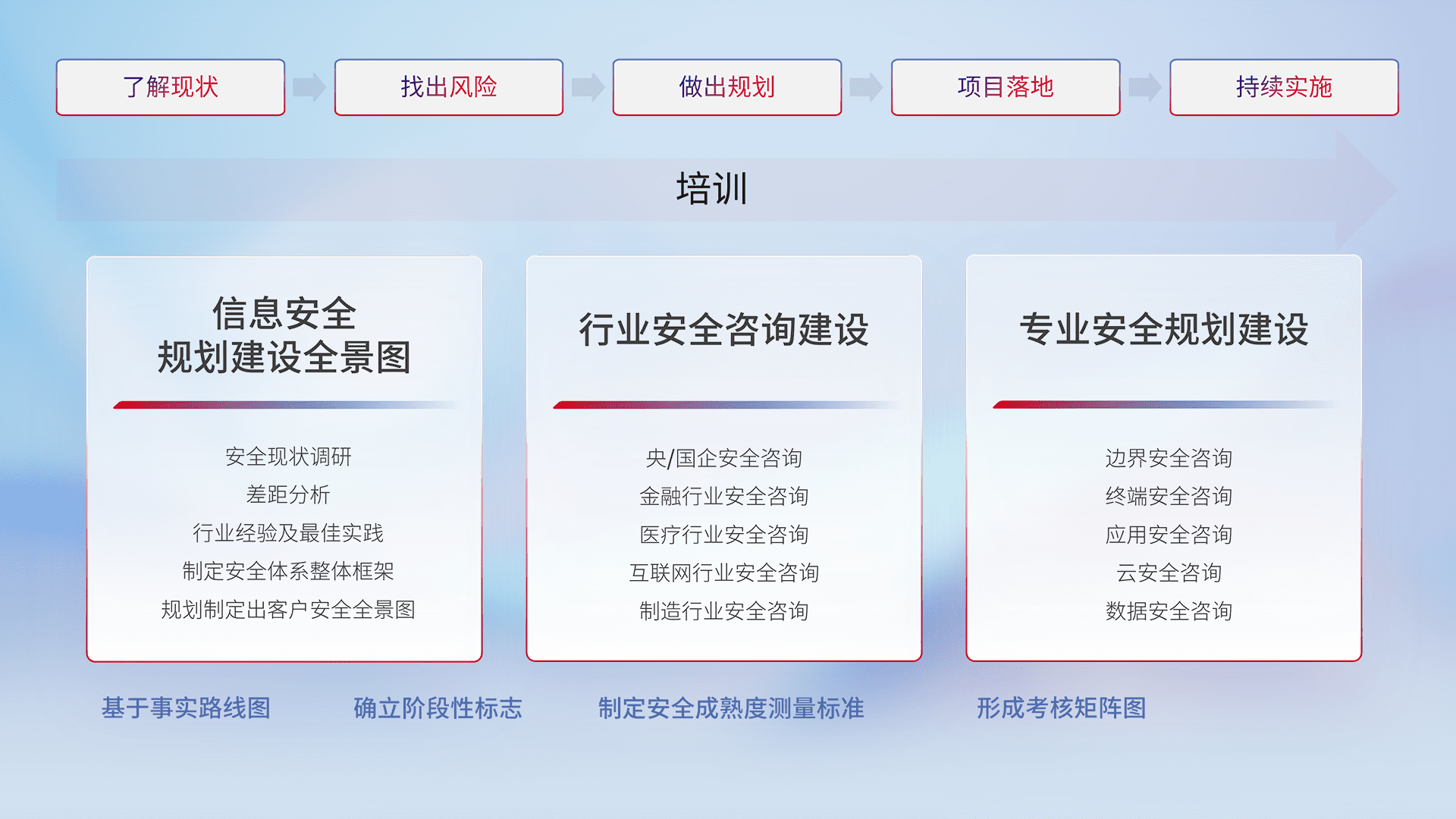 通过专业的法律咨询解读、、合规架构体现、、、差异化解决方案、、、、测试实施支持等服务,,,为客户量身打造等保合规体系。。
